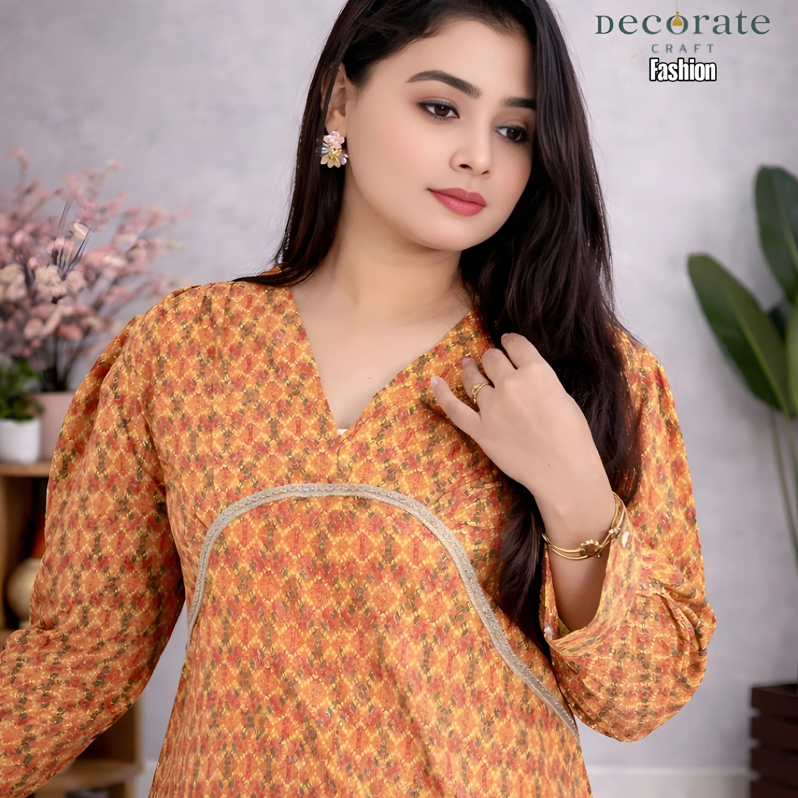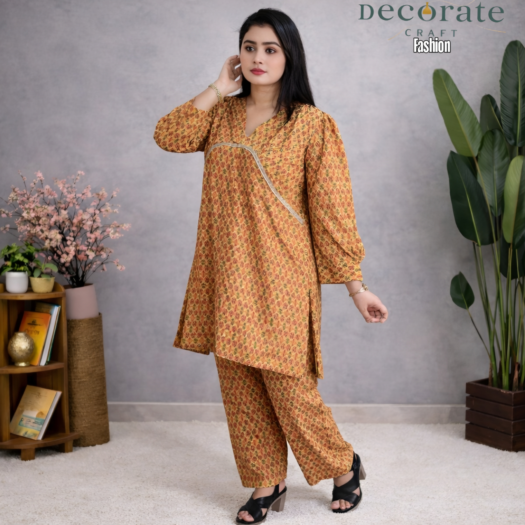 Elevate your everyday fashion with this Silk Printed Cord Set in Yellow. Made from premium silk fabric, this outfit offers a smooth feel and a stylish digital print that creates a modern, elegant look.