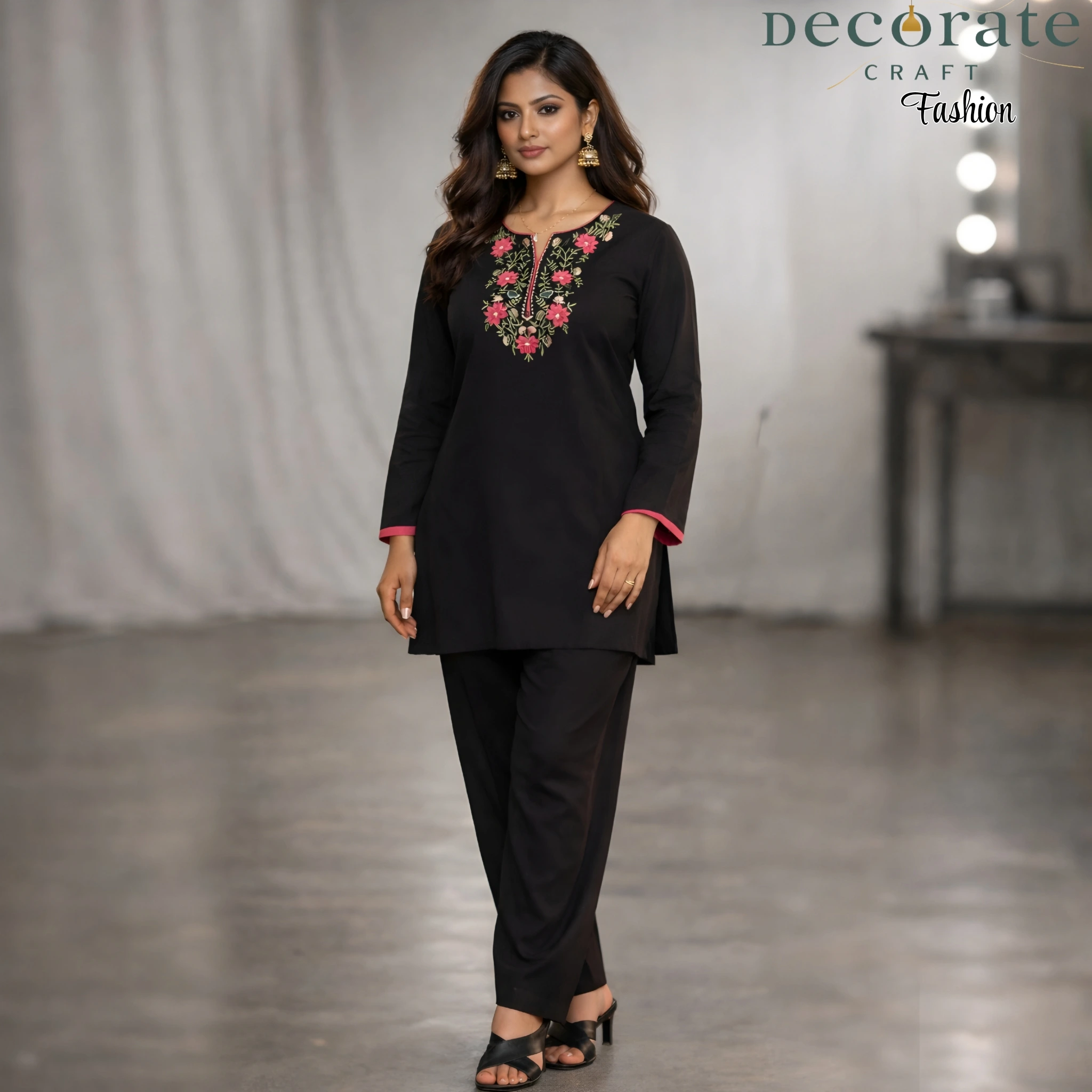 Be the first to review “black embroidered cord set for women”